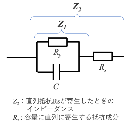 ② Z1に直列抵抗 Rsが直列に寄生したときのインピーダンス Z2